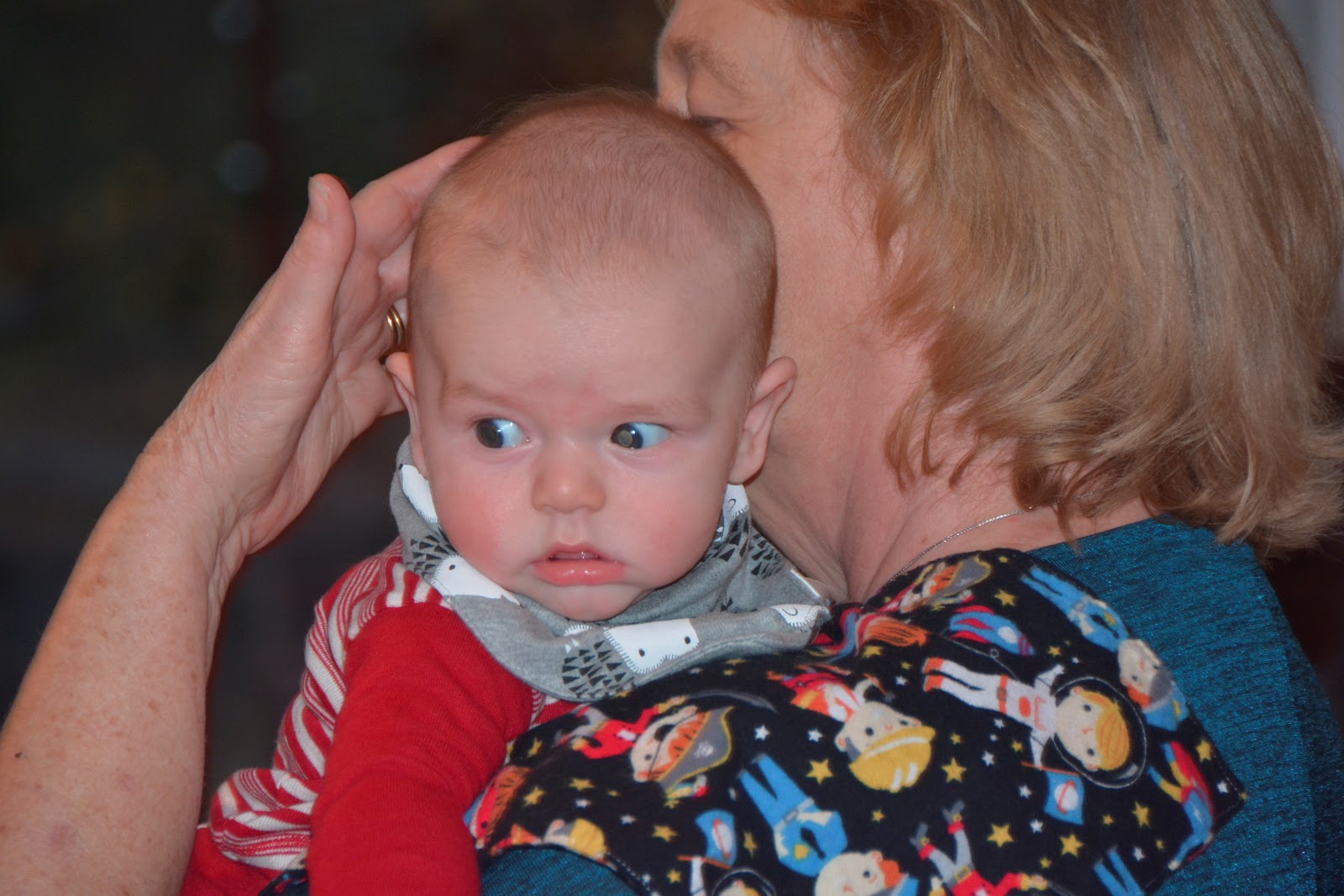 These are from our Thanksgiving Celebration at Karen's. Graham is just two months old... Look how strong he is already...